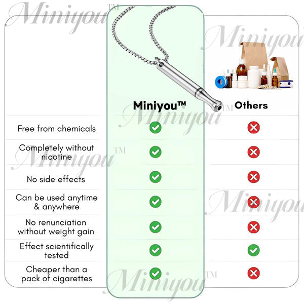 Many smoking cessation methods, such as nicotine patches, medications, or acupuncture, can be costly and time-consuming. Miniyou™ Smoking Cessation Necklace offers a cost-effective and simple alternative, allowing you to focus on your well-being without the worry of high expenses. Backed by research from lung specialists and psychologists, this necklace has been designed to ensure success, helping you quit smoking naturally and affordably.